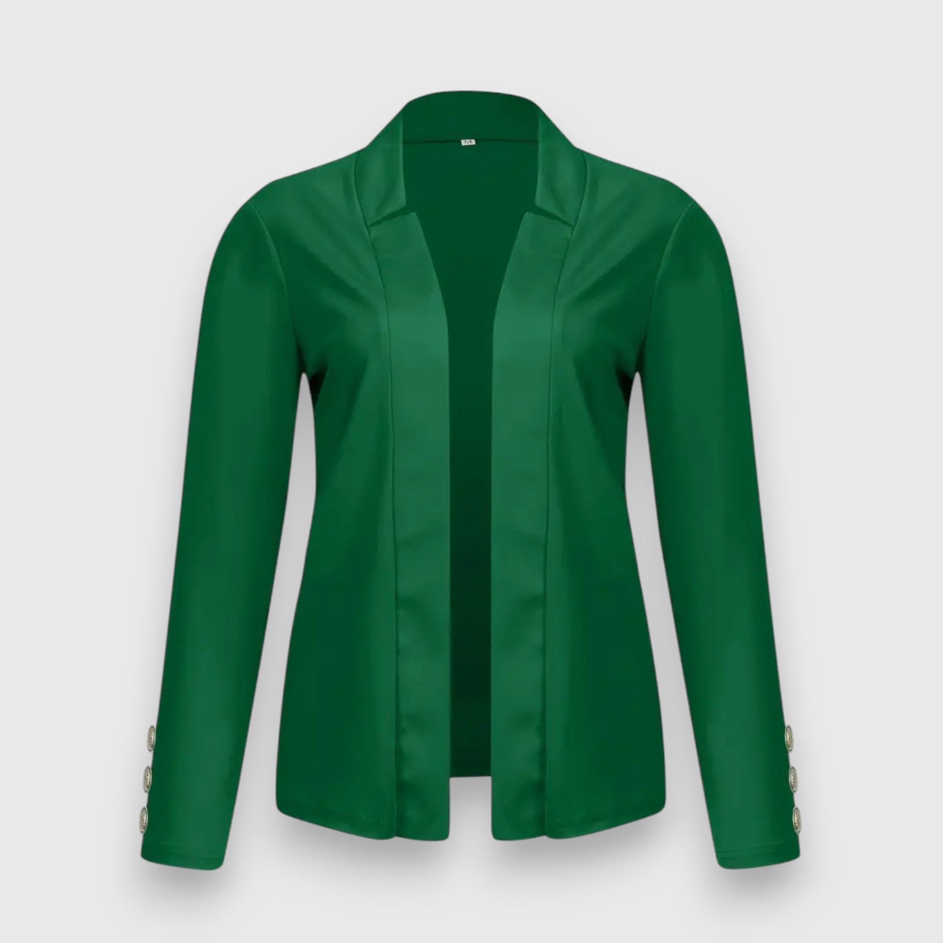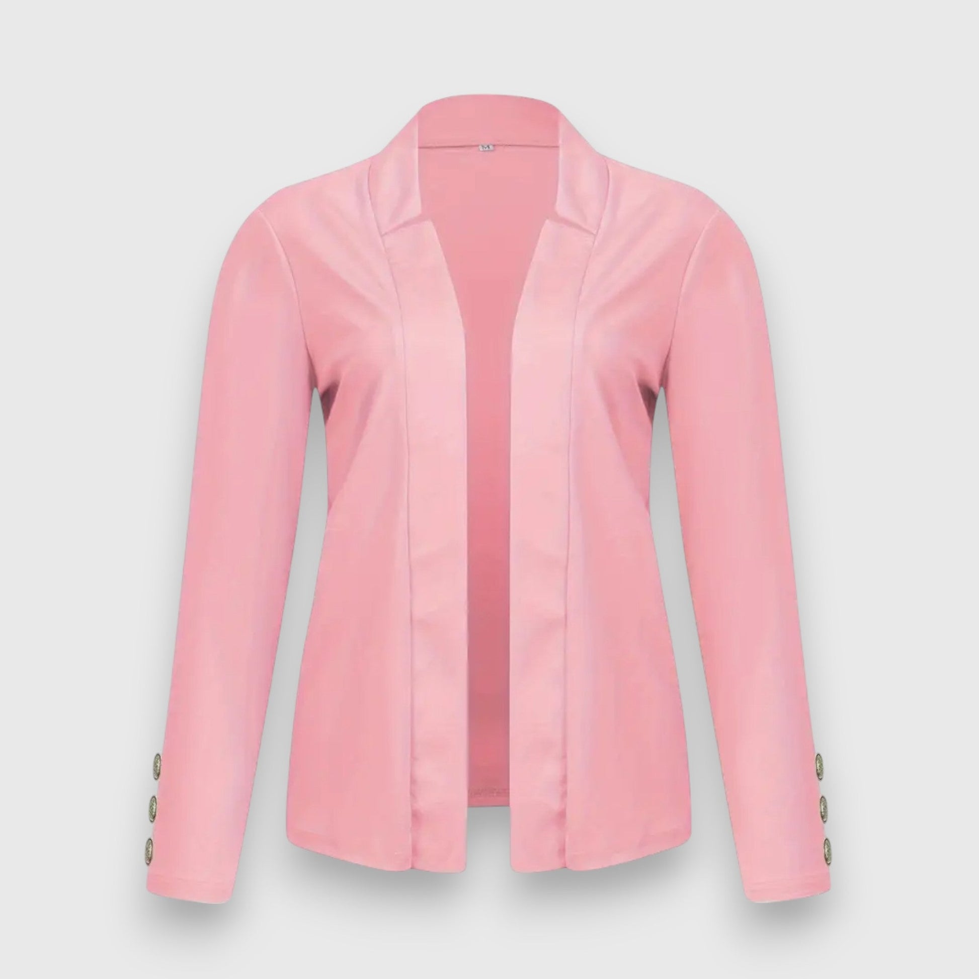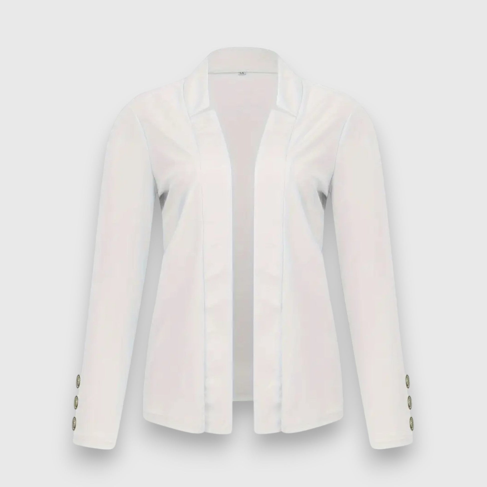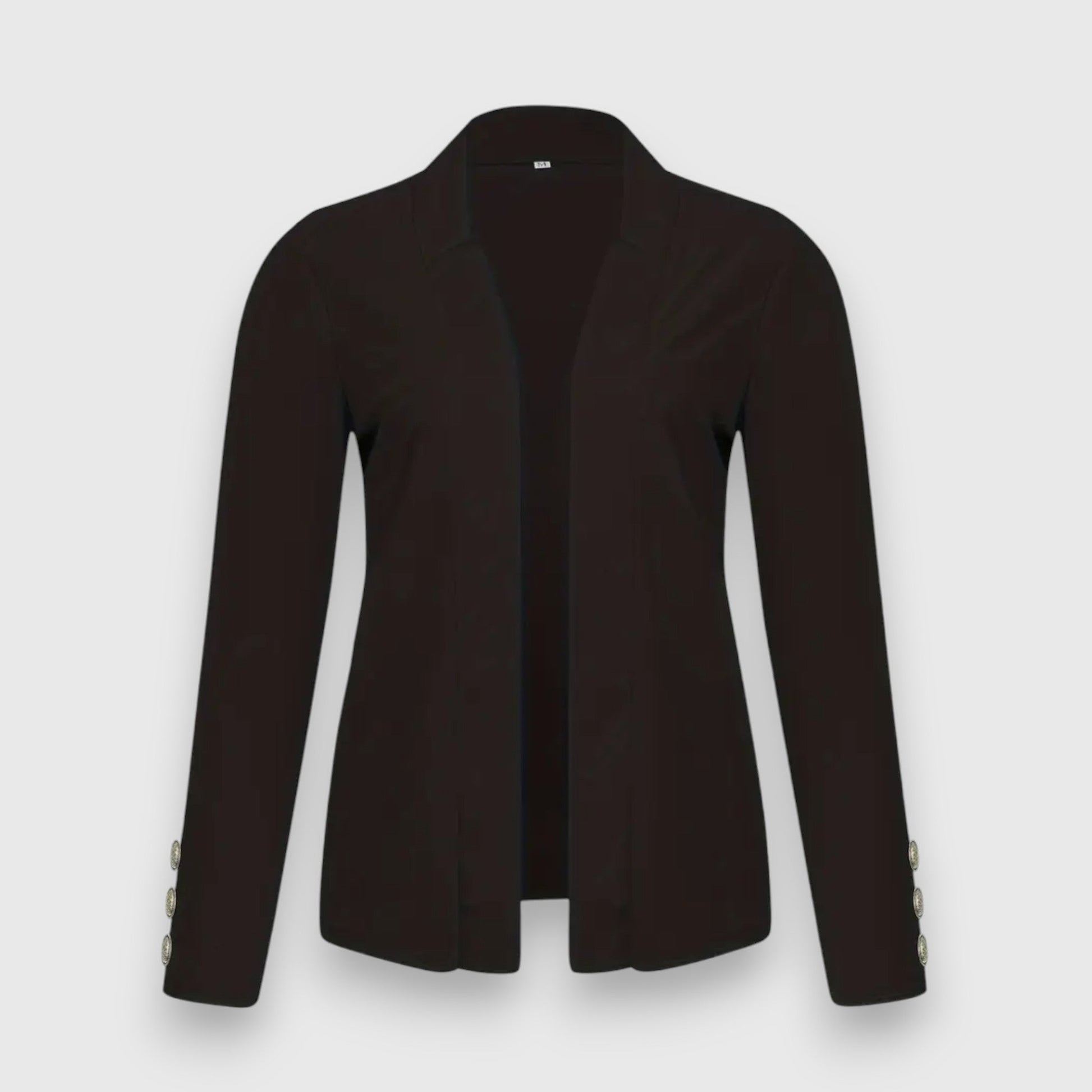 The Aria blazer combines understated elegance with professional style. Its open design with a single button front gives it a modern touch, while the long sleeves and high-quality workmanship ensure optimal comfort. Whether for a formal or casual look, this blazer is a timeless classic for any wardrobe.